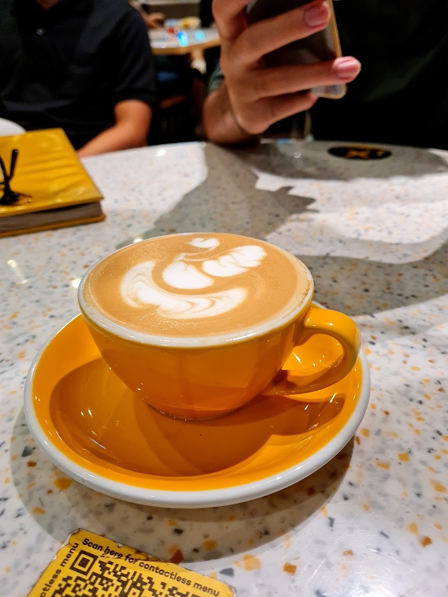 The café features comfortable indoor seating with an outdoor area that invites guests to enjoy their drinks under the gentle rays of the sun. Although the furniture shows slight signs of wear, it still contributes to the nostalgic charm of the place, creating a relaxed atmosphere perfect for both social gatherings and peaceful afternoons spent working. The ambient music complements the lively environment, enhancing your overall experience as you sip on your favorite brew.